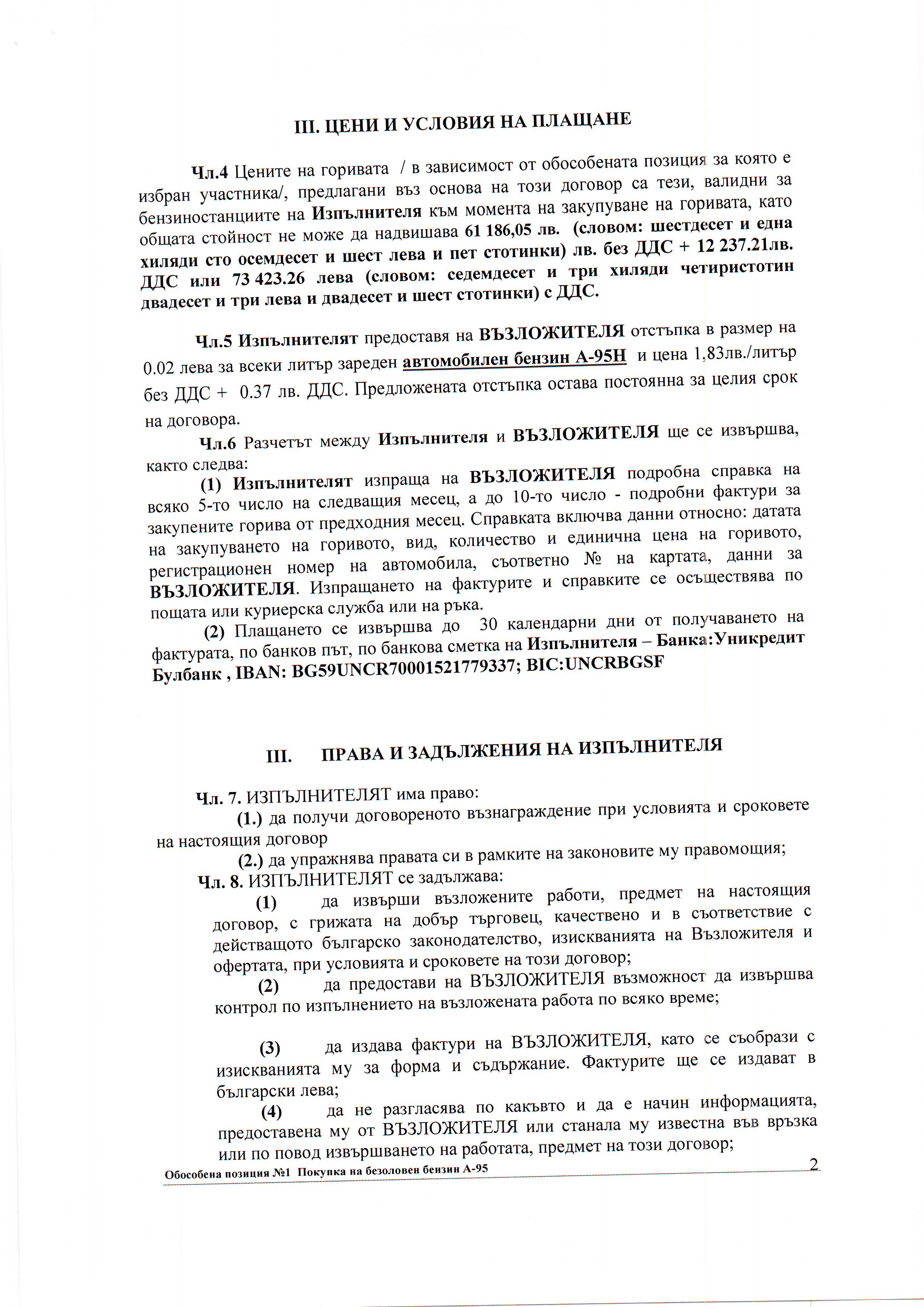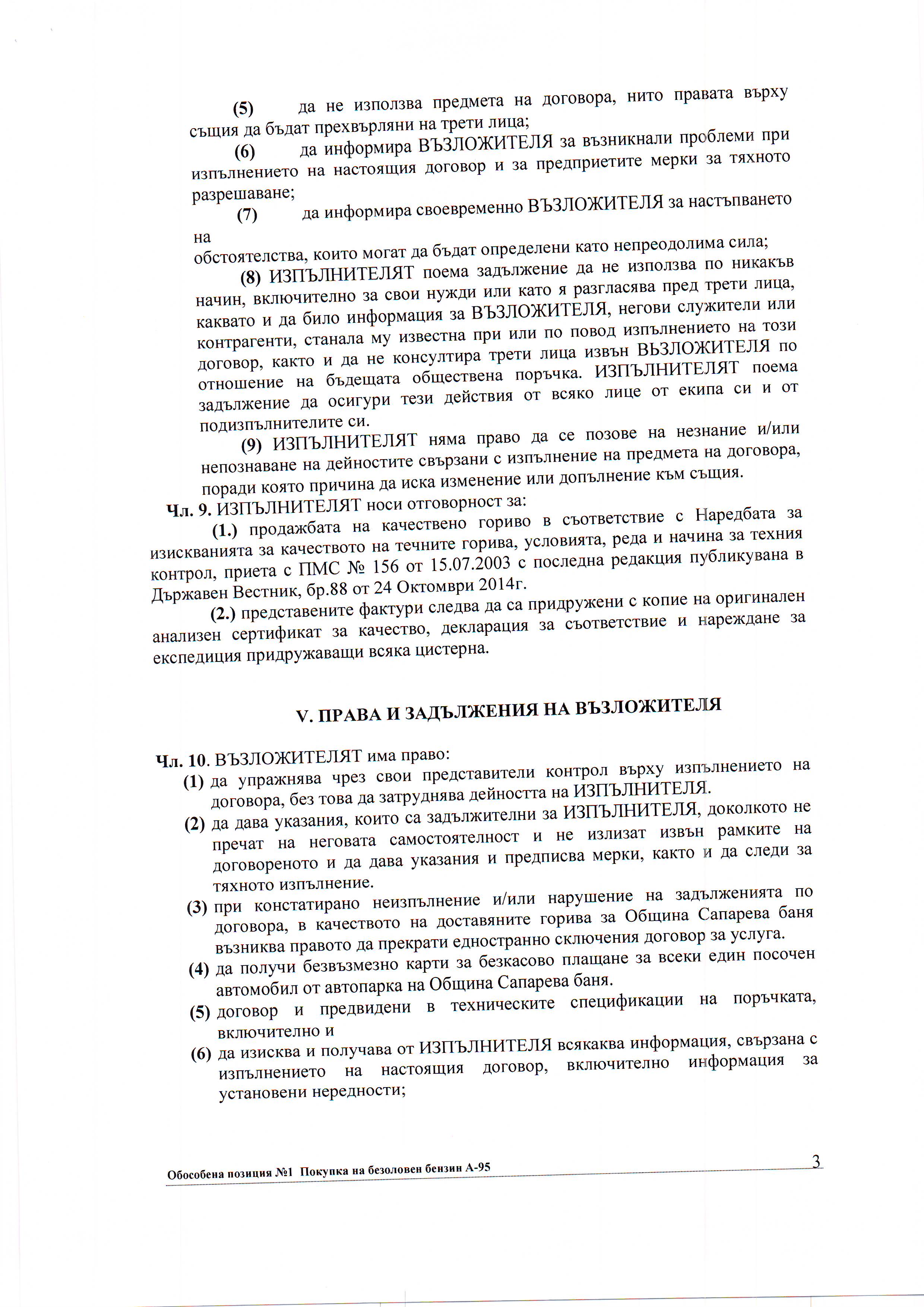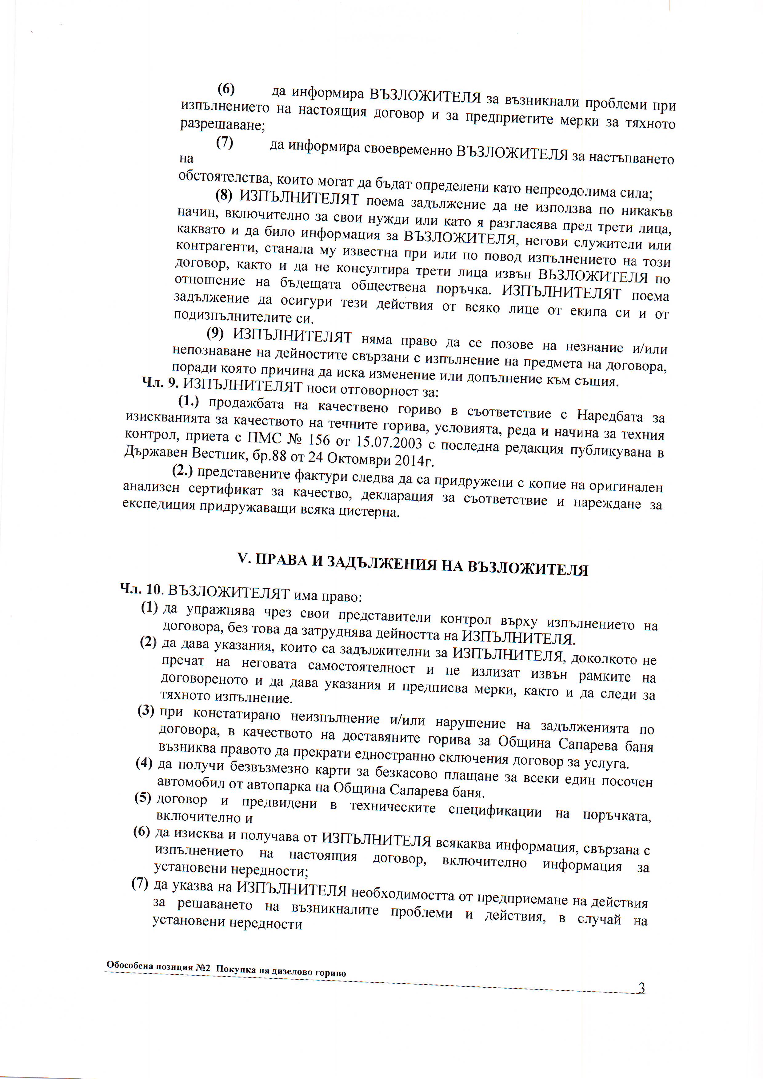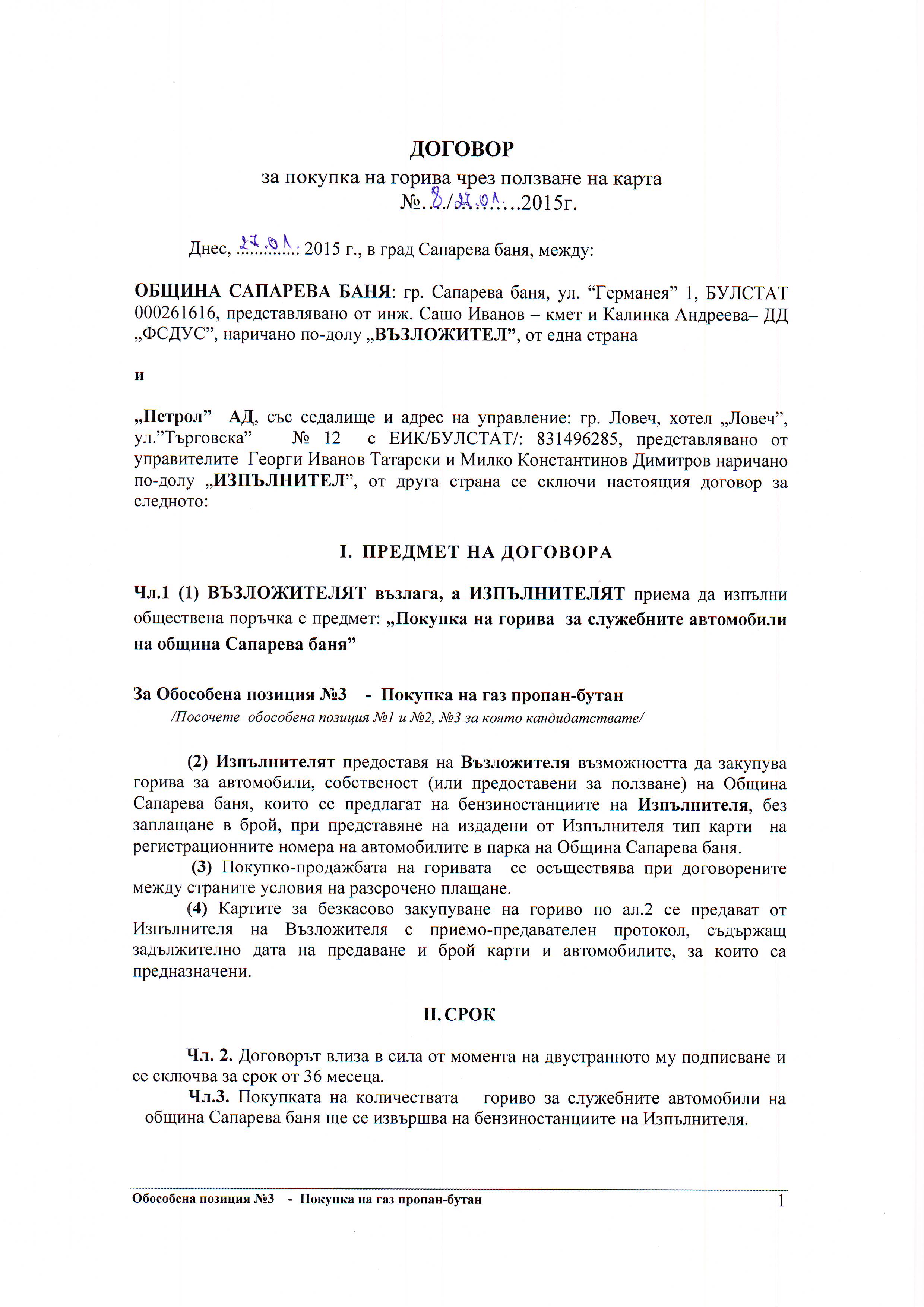 Сключени:Договор 6/27.01.2015г. ,Договор 7/27.01.2015г.,Договор 8/27.01.2015г. с "Петрол" АД за ОП с предмет:„Покупка на горива за служебните автомобили на община Сапарева баня"
