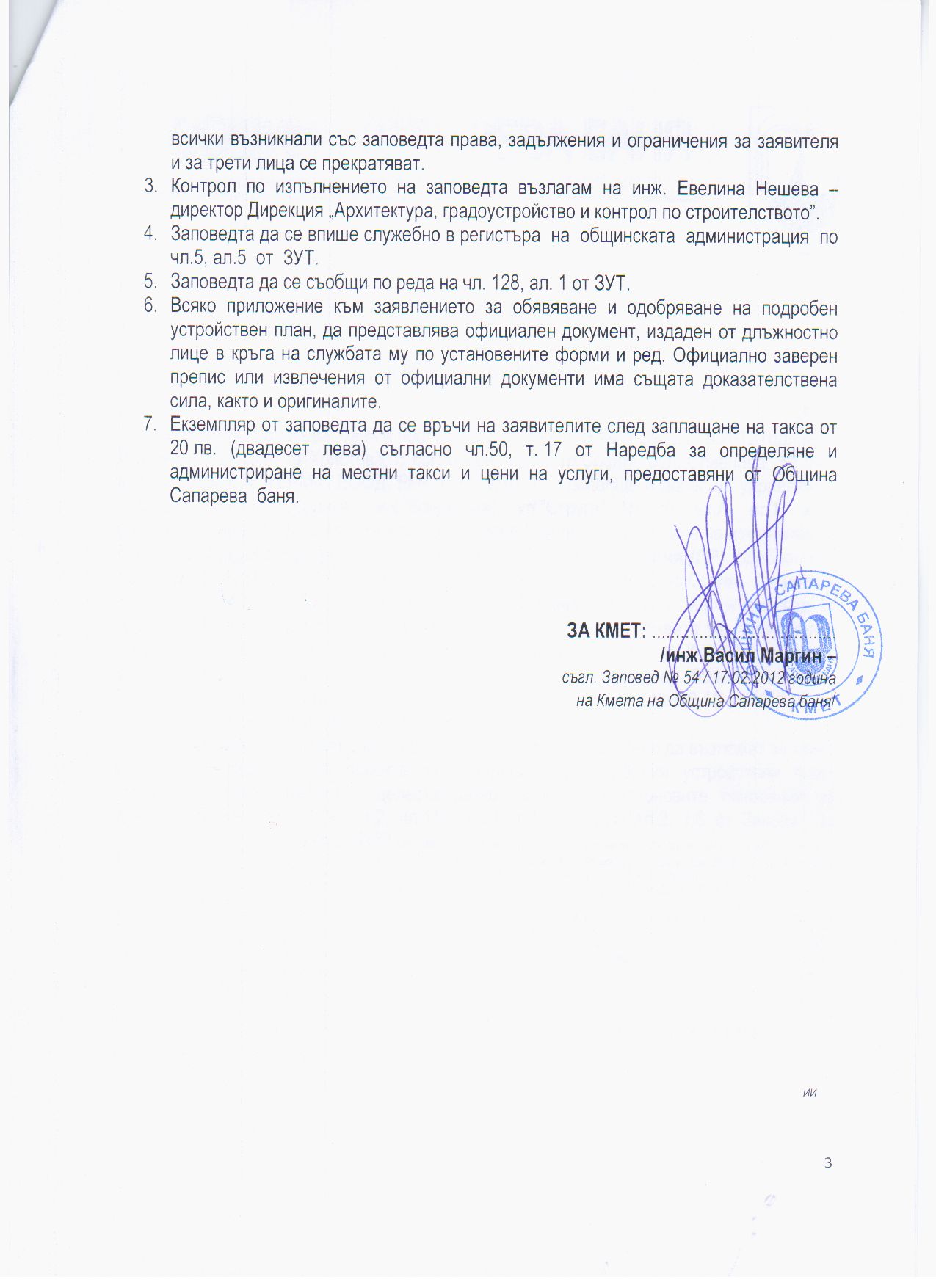 Заповедта е поставена за обществен достъп на информационното табло и интернет страницата на Община Сапарева баня и подлежи на обжалване по реда на чл.215 от ЗУТ.