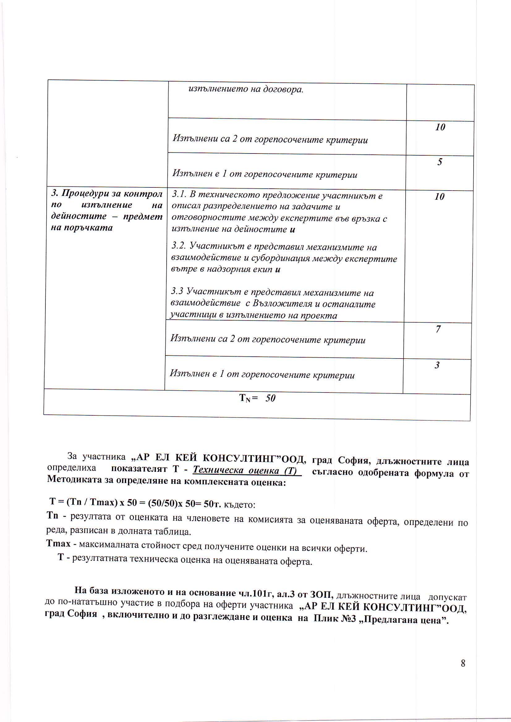 ПРОТОКОЛ №1/10.07.2014г. от проведена публична покана с предмет:„Консултантска услуга за изпълнение и отчитане на дейностите по проект № 10/313/00272