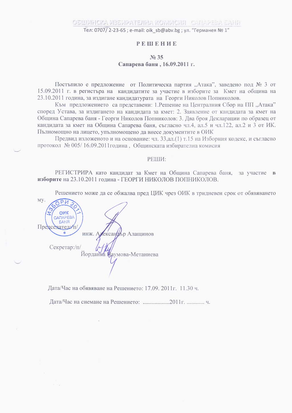 Aрхив избори > Избори 2011 - Местни избори > Решения на ОИК