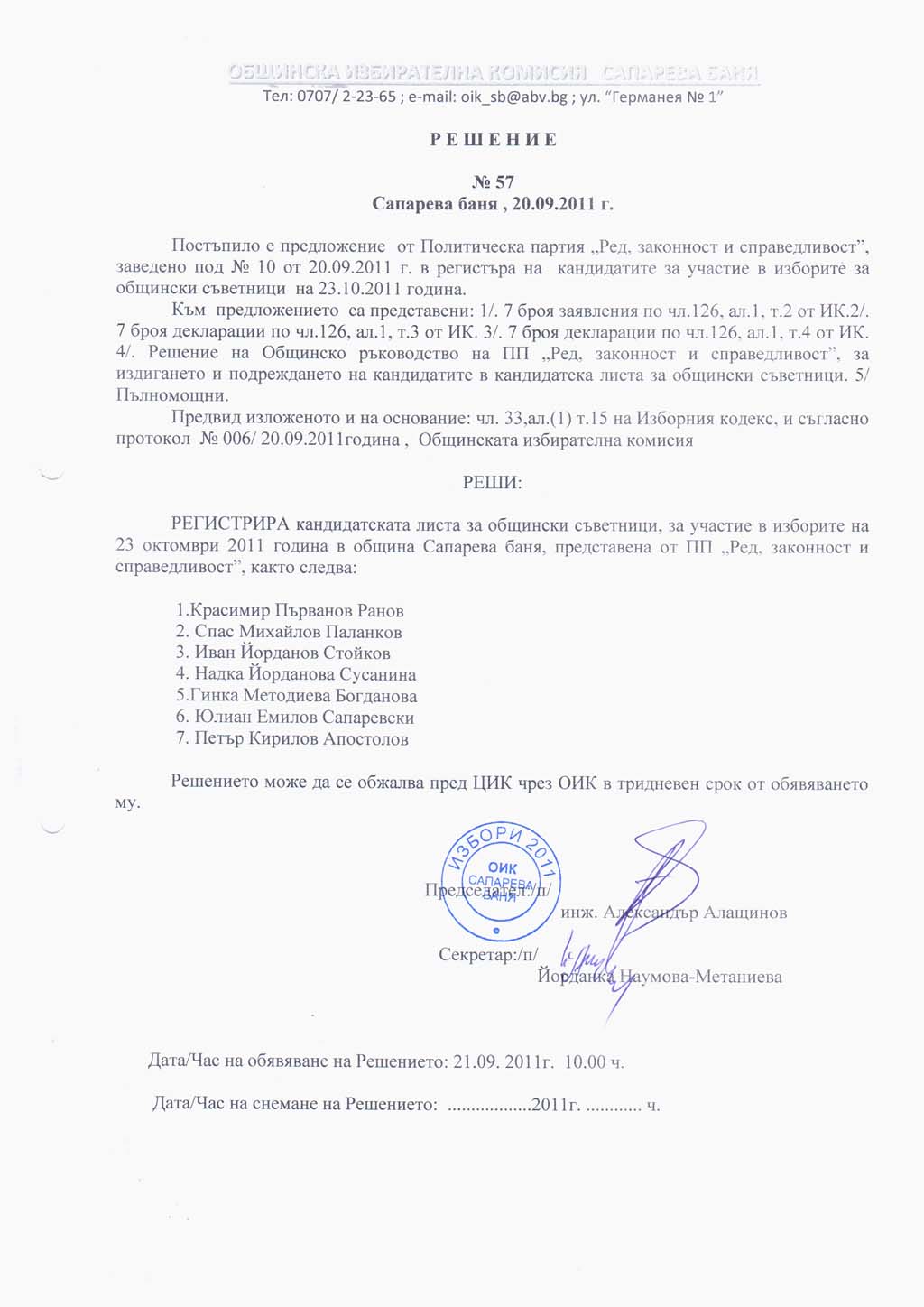 Aрхив избори > Избори 2011 - Местни избори > Решения на ОИКПринтирай