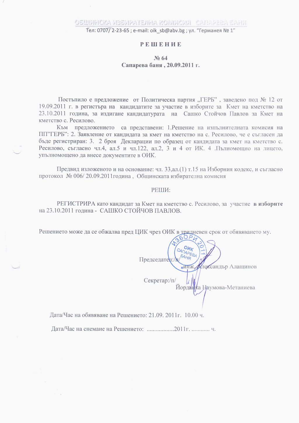 Aрхив избори > Избори 2011 - Местни избори > Решения на ОИК