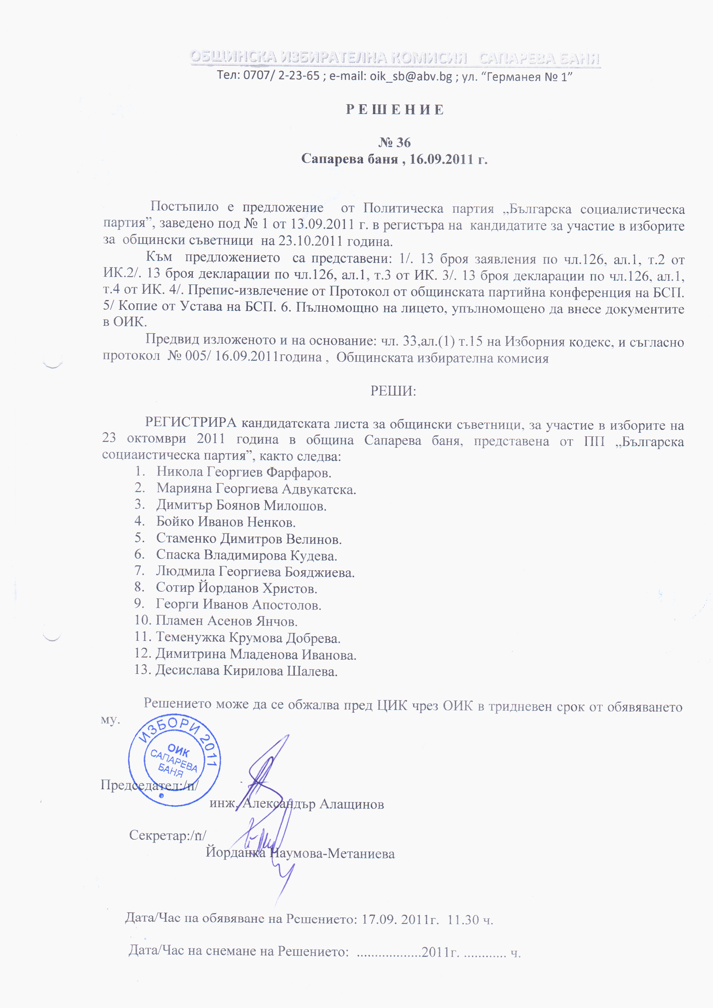 Aрхив избори > Избори 2011 - Местни избори > Решения на ОИКПринтирай