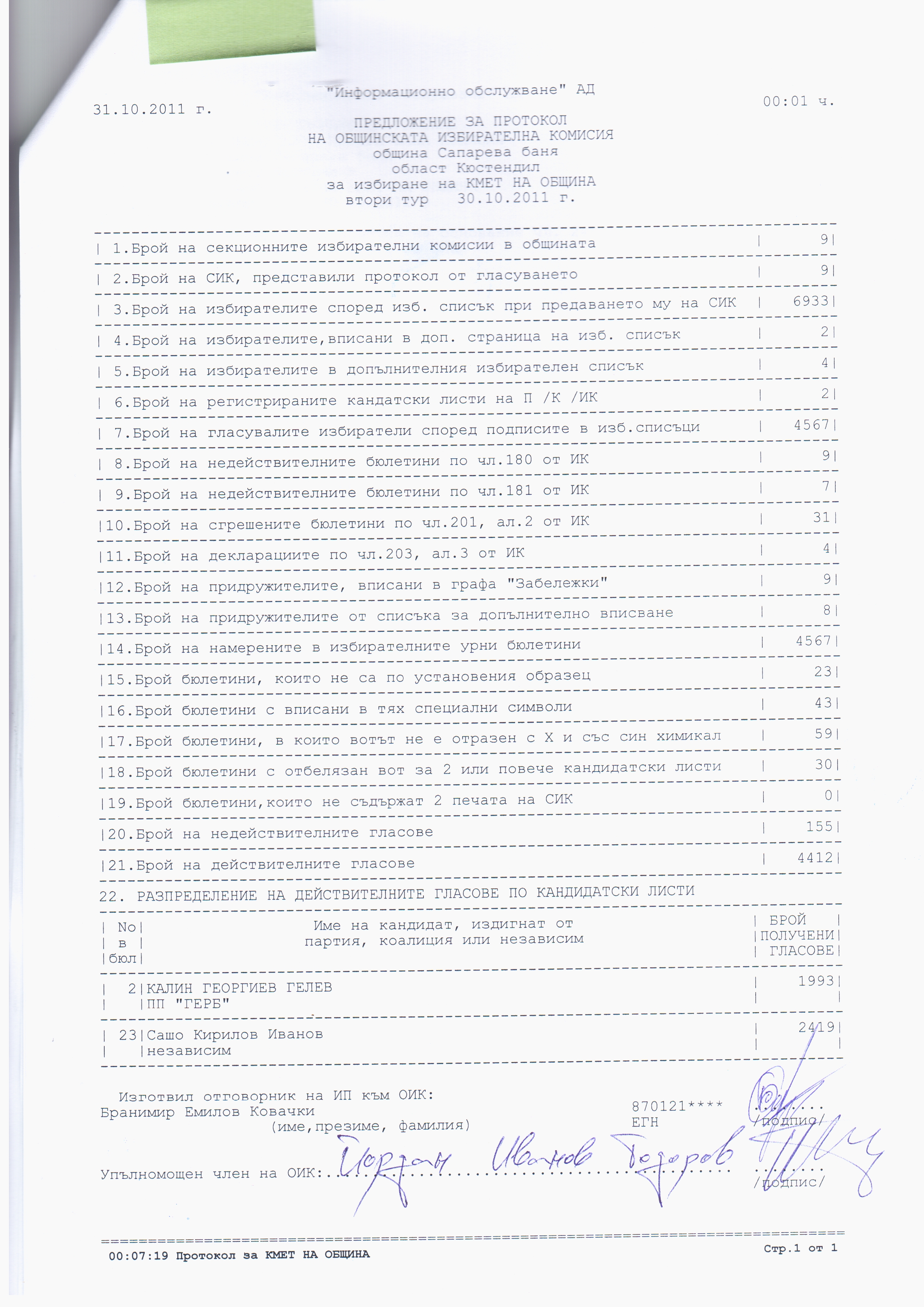 Протокол за избиране на кмет на община, втори тур