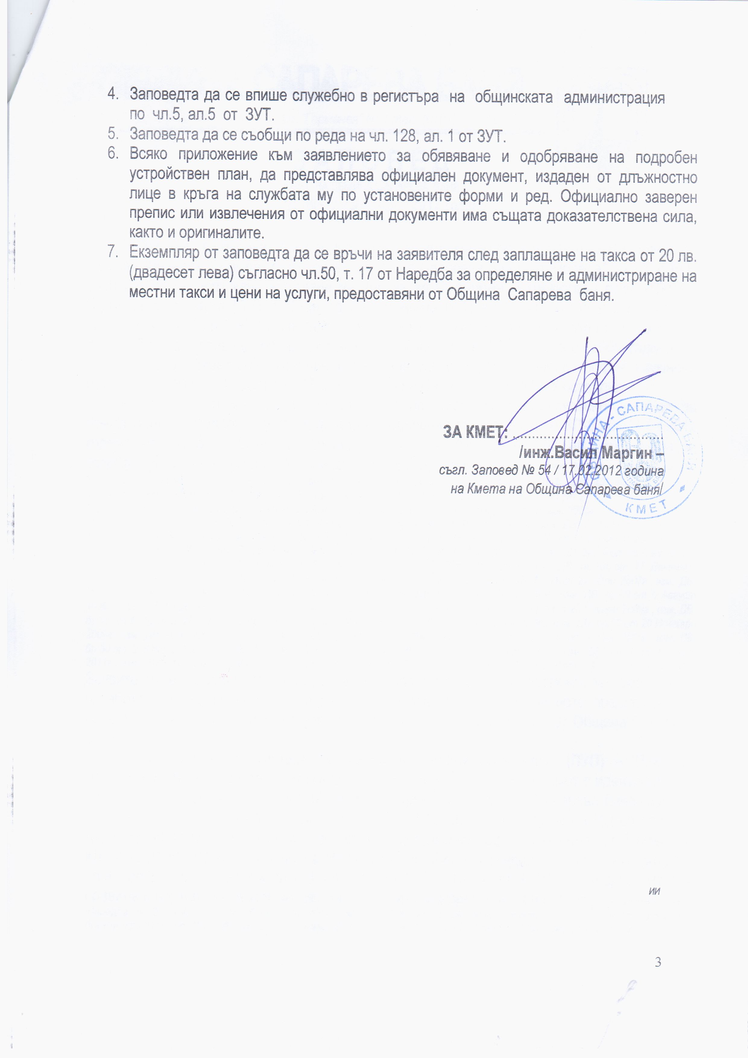 Заповед № РД-00-11/26.03.2012