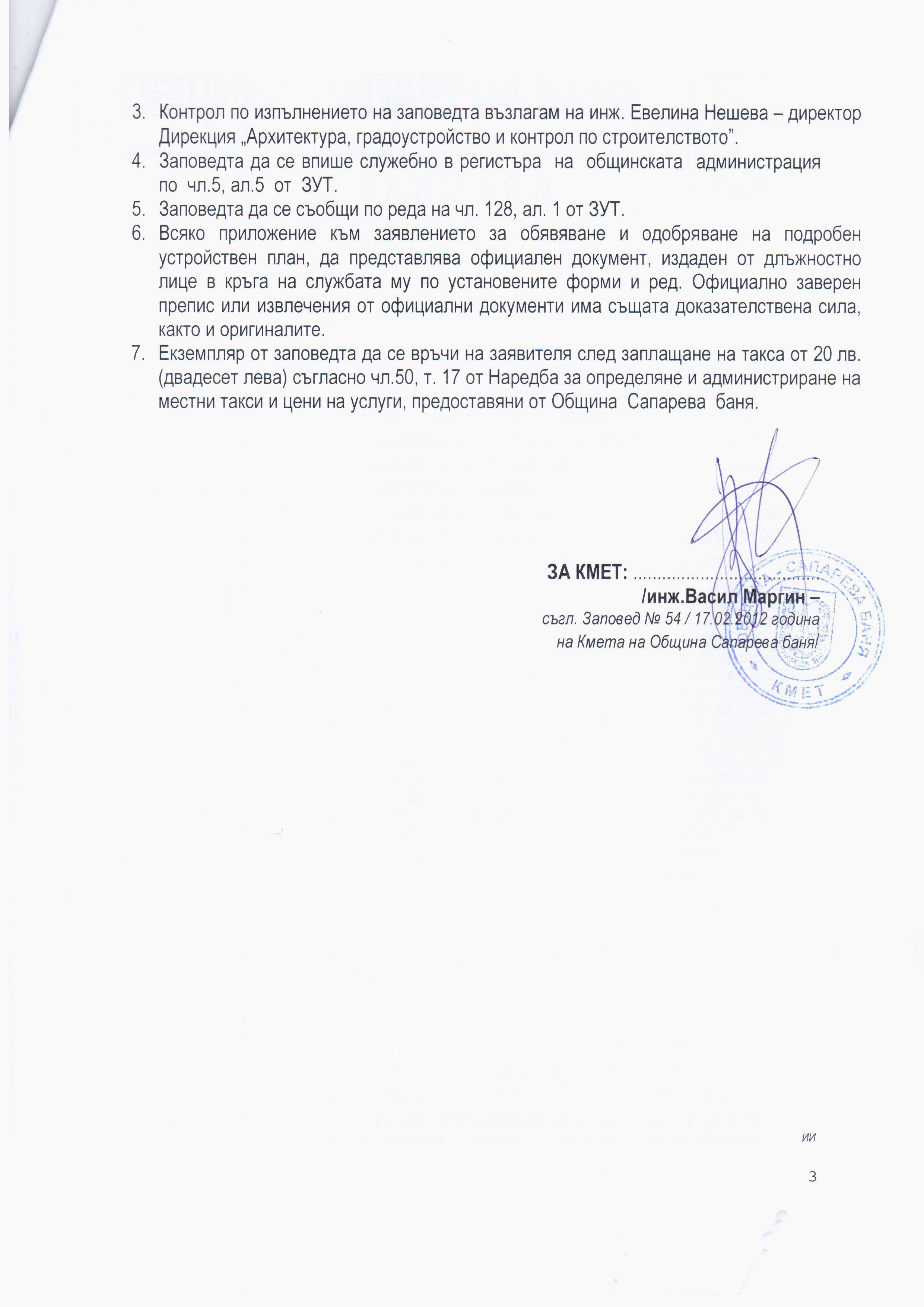 Заповед № РД-00-17/30.03.2012