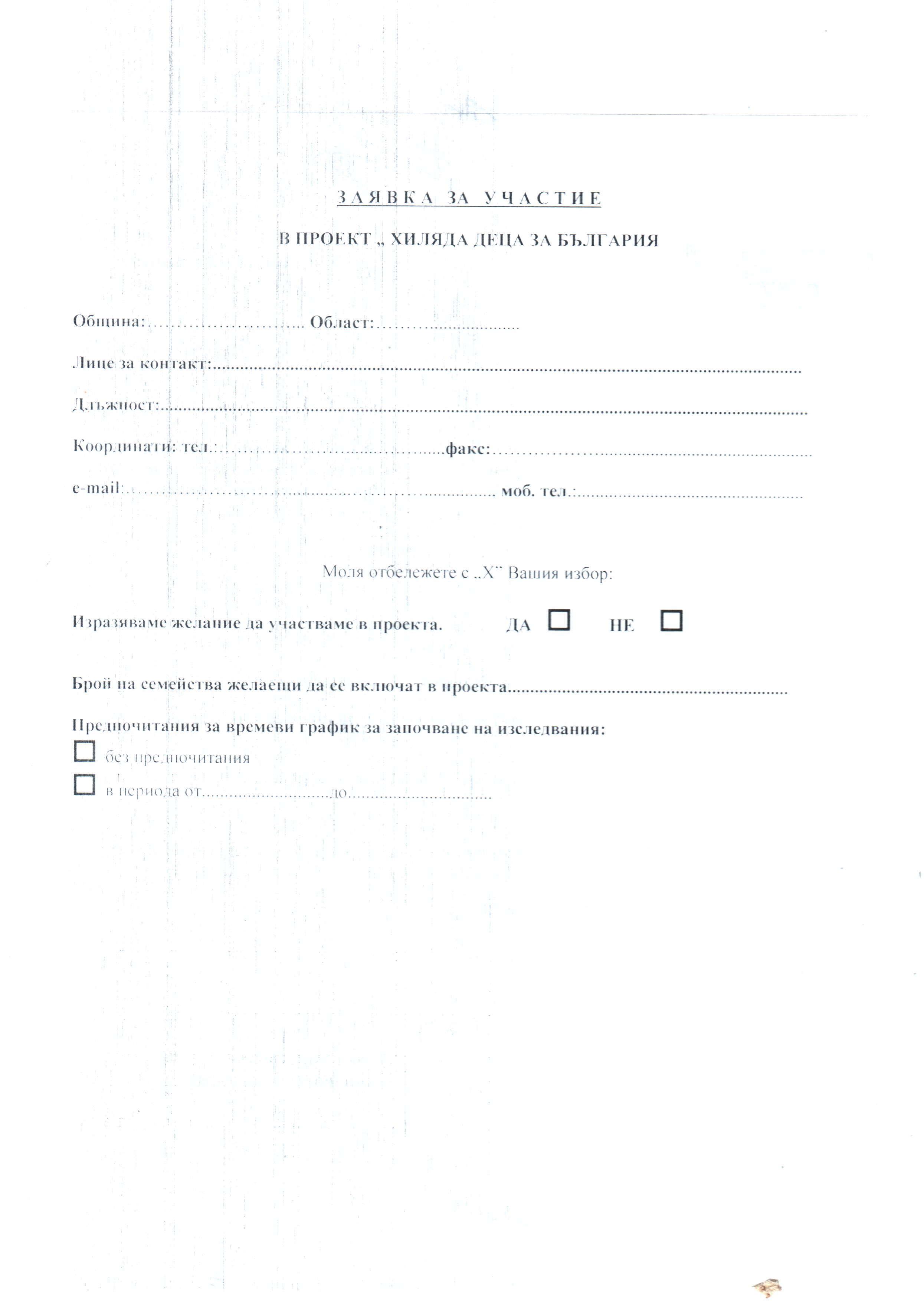 уведомяваме Ви, че има предложение от страна на Клиника "Малинов" за включване на граждани с репродуктивни проблеми в проект: "Хиляда деца на България". Срок за попълване на заявката 12 март. За по-подробна информация, прочетете прикачения файл.